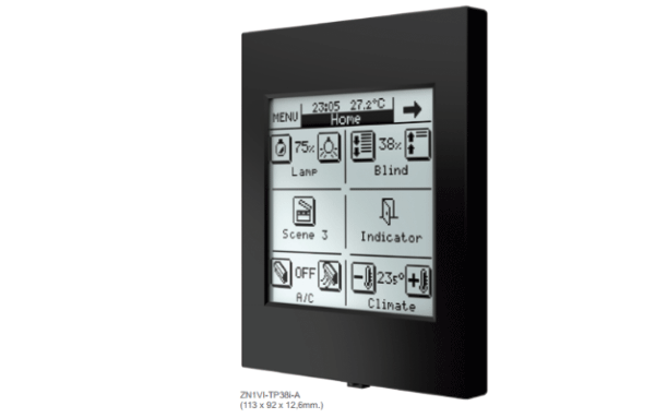 Una estética de mínimas formas dominada por la sencillez y formas planas, facilita la integración de la comunicación con los entornos de trabajo y descanso, consiguiendo un diseño atemporal. Su display de 3,8” en formato cuadrado facilita su manejo y disfrute, consiguiendo una comunicación distribuida dentro del hogar inteligente. Disponible en: blanco polar (ZN1VI-TP38i-W), aluminio (ZN1VI-TP38i-S) y antracita (ZN1VI-TP38i-A). Mando a distancia opcional.
